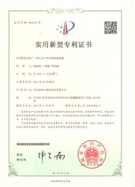 - 關于我們 - 資質榮譽 - 一種大功率窄體結構變頻器專利