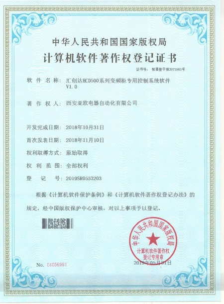 - 關于我們 - 資質榮譽 - 匯創達HCD500系列變頻柜專用控制系統軟件